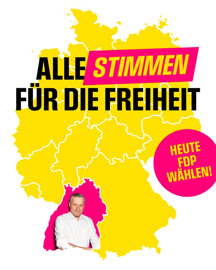 Heute gilt es!🗳️ Zehn Jahre haben Grüne und CDU in Baden-Württemberg einen Abwärtstrend bei Wirtschaft und Bildung verwaltet. Deshalb geht es heute nicht um die Frage, ob das Land von Grün-Schwarz oder Schwarz-Grün geführt wird. Es geht um die Frage, ob Baden-Württemberg wieder Aufsteigerland wird. Garantieren kann das nur eine starke FDP. 💪 Deshalb: Heute Hans-Ulrich Rülke und die FDP Baden-Württemberg wählen!